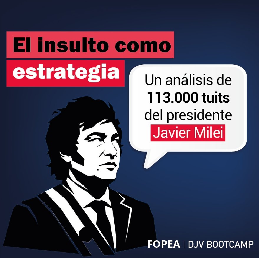 El Foro de Periodismo Argentino (FOPEA) publica “El insulto como estrategia. Un análisis de 113.000 tuits del presidente Milei”, quinto producto de Data Journalism Visualization (DJV) Bootcamp. Se trata de una pieza de periodismo visual que explora el discurso del jefe de Estado argentino en X (antes Twitter), y constata que el 15,2% (16.806) de …