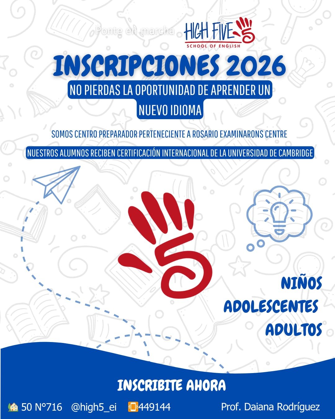 Con una propuesta educativa centrada en el alumno y adaptada a cada etapa de la vida, High5 anunció la apertura de inscripciones para el ciclo 2026, ofreciendo clases de inglés para niños, adolescentes y adultos, además de su espacio Montessori destinado a los más pequeños.